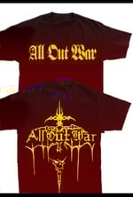 Maroon shirt with yellow ink. 2 sided, band logo print is the front.